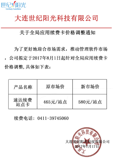 應(yīng)速達軟件總部要求,速達續(xù)費站點卡將于2017年8月1日漲價,即將到期或者想一次性續(xù)費多年的客戶請盡快聯(lián)系我們!