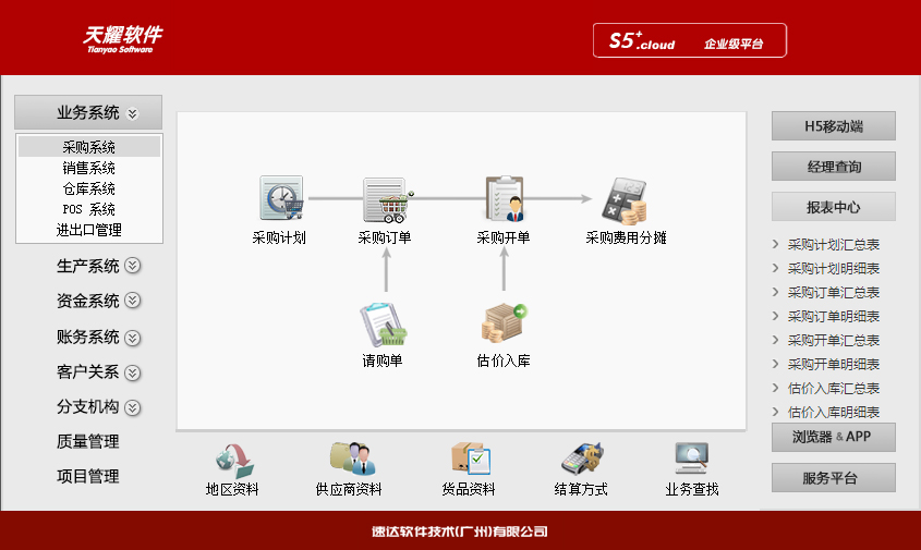 《天耀S5+.cloud》是速達(dá)軟件公司最新推出的平臺(tái)化企業(yè)管理應(yīng)用系統(tǒng)。支持云部署和桌面服務(wù)器部署及APP部署,高度滿足企業(yè)應(yīng)用平臺(tái)化的需求,實(shí)現(xiàn)了跨平臺(tái)部署應(yīng)用,大大提升了應(yīng)用效率和安全性。平臺(tái)化產(chǎn)品融入了企業(yè)經(jīng)營(yíng)管理和辦公管理思想,提高了企業(yè)運(yùn)營(yíng)質(zhì)量,系統(tǒng)有效的將龐大的供應(yīng)鏈業(yè)務(wù)管理和OA企業(yè)辦公同置于《天耀S5+.cloud》平臺(tái)。同時(shí)平臺(tái)支持瀏覽器端(B/S)、桌面端(C/S)、移動(dòng)應(yīng)用(APP)等多種應(yīng)用模式,真正滿足企業(yè)管理和OA辦公的個(gè)性化需求,全面提升企業(yè)綜合管理能力。