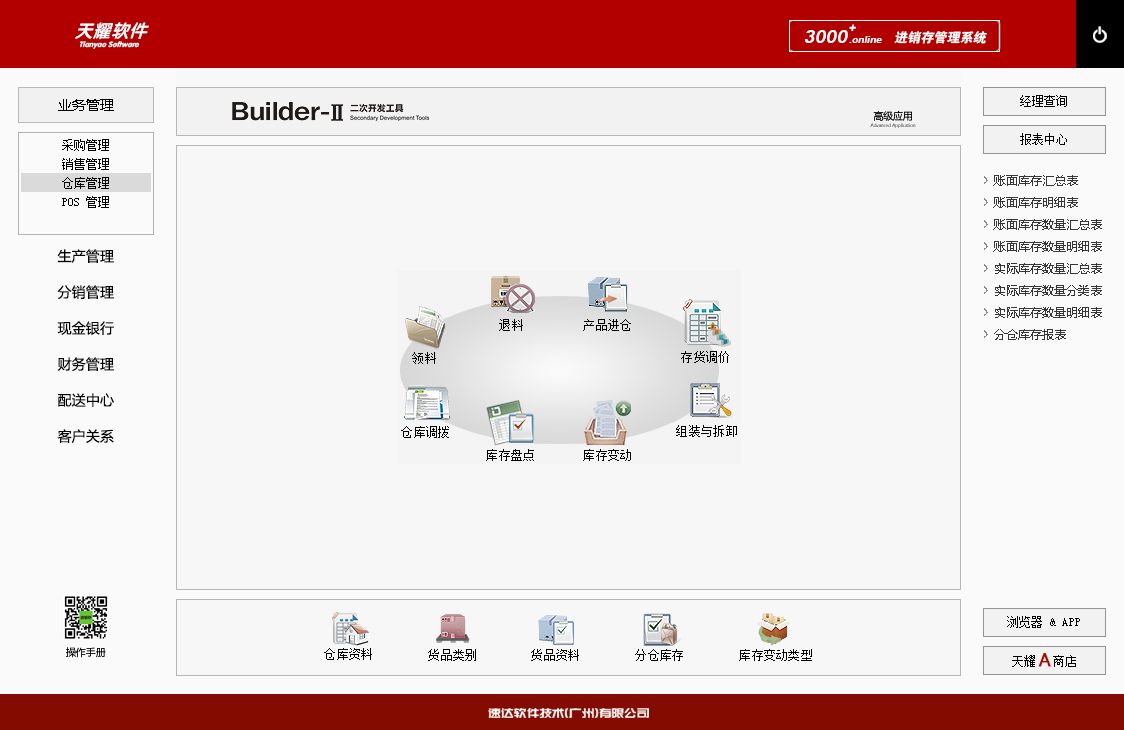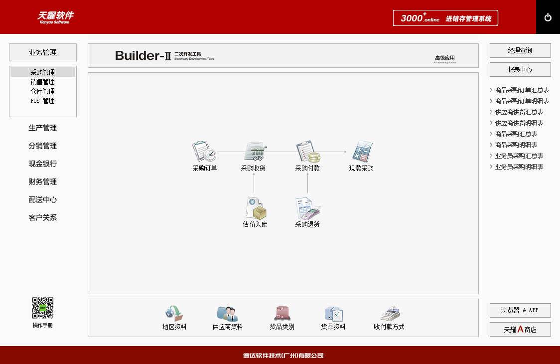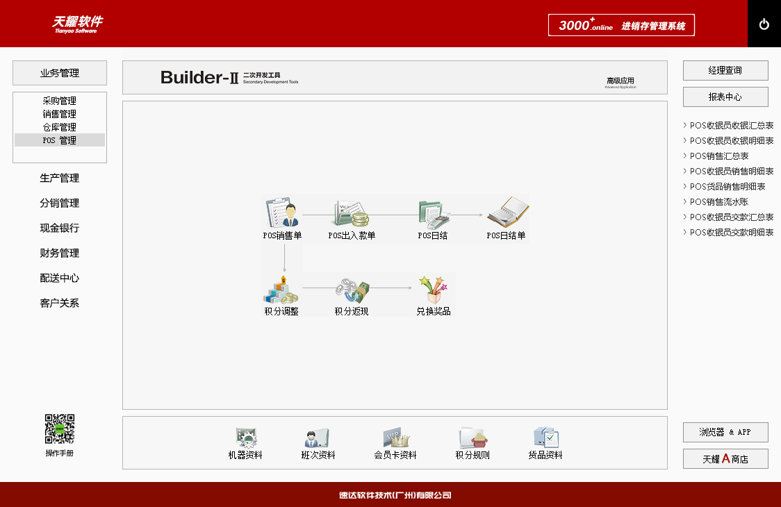 《天耀3000+.online PRO》集進(jìn)銷存、POS、財(cái)務(wù)、生產(chǎn)、CRM為一體的中小企業(yè)管理軟件。軟件支持云部署和桌面服務(wù)器部署及APP部署,并科學(xué)地融入Builder-II二次研發(fā)工具,滿足企業(yè)管理的個(gè)性化需求,大大提升了應(yīng)用效率和安全性。 軟件支持局域網(wǎng)/互聯(lián)網(wǎng)多用戶應(yīng)用,實(shí)現(xiàn)異地多機(jī)構(gòu)、多店面、多倉(cāng)庫(kù)等遠(yuǎn)程應(yīng)用,支持APP移動(dòng)端應(yīng)用,數(shù)據(jù)實(shí)時(shí)同步,安全、穩(wěn)定、高效、易維護(hù),特別適合中小企業(yè)使用。