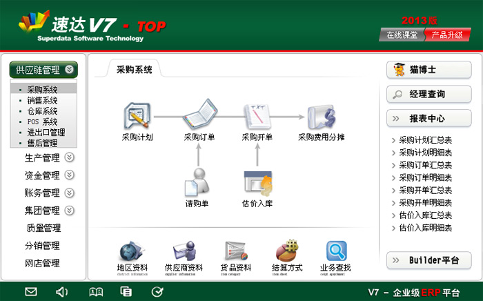 采購(gòu)報(bào)表、銷(xiāo)售報(bào)表、庫(kù)存報(bào)表、應(yīng)收應(yīng)付報(bào)表、銷(xiāo)售分析報(bào)表、采購(gòu)分析報(bào)表、庫(kù)存分析報(bào)表。